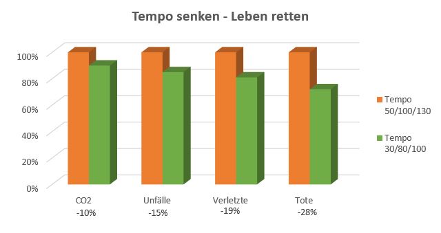 Die Einführung niedrigerer Tempolimits bringt mehrfache Vorteile. In Zahlen bedeutet das: