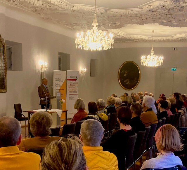 Der bekannte Autor, Vortragende, Theologe und Psychotherapeut machte deutlich: Ein erfülltes Leben gibt es, wenn „es aus der Kraft der Wurzel wächst“, getragen ist von der Zuwendung und Wertschätzung dem/der Anderen gegenüber und die Sehnsucht wach hält für das ganz persönliche Lebensfeuer. So könne die „Liebeserklärung ans Älterwerden“ in Augenblicken der Stille und Betrachtung wie auch im alltäglichen Tun umgesetzt werden. Denn das Älterwerden bedeute Lebensqualität, Reife, Bedächtigkeit, Leiser-treten, Dankbarkeit und Zu-sich-stehen, den Mut, die Wahrheit zu leben, sich ihren Herausforderungen zu stellen und sich an ihren Schönheiten nicht nur zu erfreuen, sondern sie auch von innen her zu verkosten. „Die Veredelung der Zeit“ in der wertvollsten Phase des Lebens umfasse, so Mettnitzer, den Mut, sich vom unnötigen oder belastenden „Gerümpel“ zu entledigen, auf den persönlichen „Fußabdruck“ nicht zu vergessen und zugleich, ganz im Sinne Rose Ausländers, offen und zuversichtlich nach vorne zu blicken: „Wirf deine Angst in die Luft […] Sei was du bist, gib was du hast.“ 1