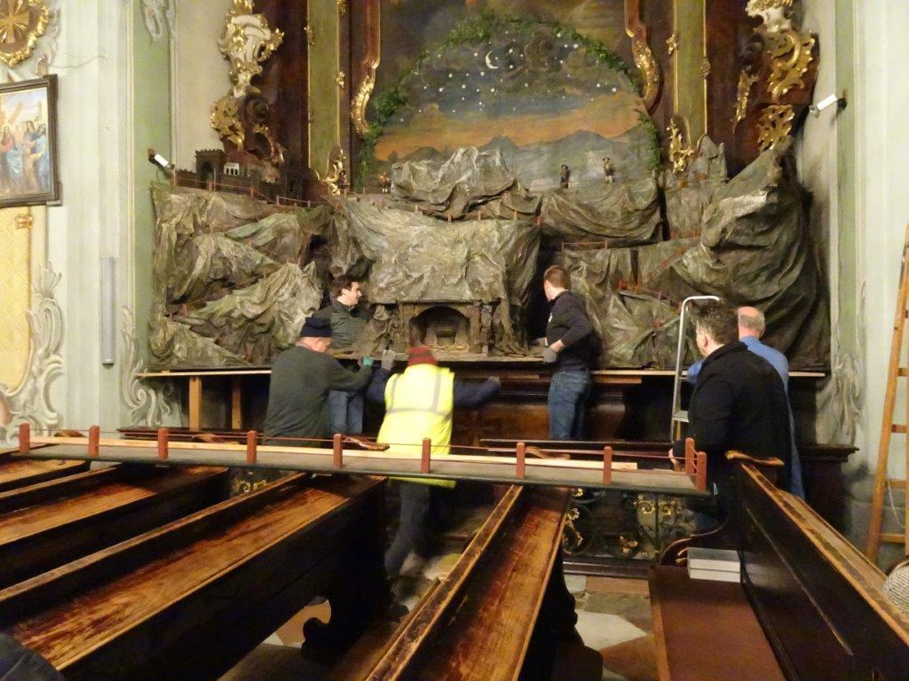 Aufbau der Krippe in der Pfarrkirche am 20. Dezember 2017