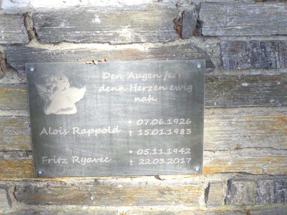 Im März 2017 verunglückte der Bruder von Frau Rappold, Fritz Ryavec, in unmittelbarer Nähe auf unerklärlicher Weise mit dem Traktor – wie sein Schwager bei Waldarbeiten. Unterhalb der Nische trägt eine Tafel angebracht den Spruch: „Den Augen fern, den Herzen ewig nah“ und die  Geburts- und Sterbedaten der beiden Verunglückten.