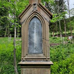 An der Vorderseite ist noch ein sehr vergilbtes Bild vorhanden, das vermutlich den Heiligen Josef mit dem Jesuskind auf dem Arm darstellt. Eine Eisenstange an der Rückseite stützt das Kreuz.