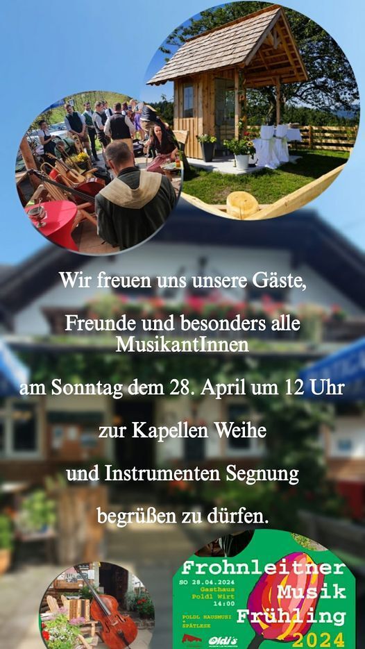 Ein wunderbares Zeichen des Glaubens ist die jüngste Kapelle in der Pfarrgemeinde Frohnleiten, nämlich die neue schmucke Kapelle am Hügel direkt über der urigen, musikantenfreundlichen Gaststätte Poldlwirt, eingebettet in unberührter Natur und 740 m Seehöhe in Adriach-Reising 62. Diese ersetzt nunmehr den in die Jahre gekommenen kleinen Bildstock.