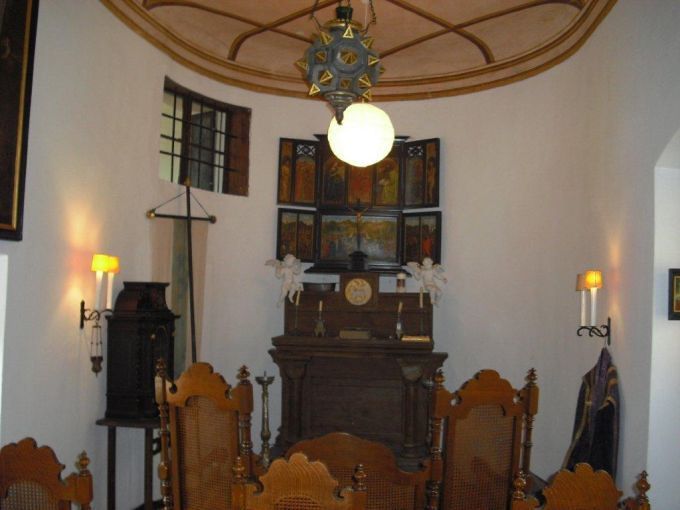 Die im 12. Jahrhundert erbaute Burg Rabenstein ist wohl eine der imposantesten Burganlagen des ganzen Murtales. Die Altburg, aus der heute ein moderner Stahl-Glas-Bau von Burgherrn DI Werner Hochegger ragt, brannte ab und wurde nicht wieder aufgebaut. Die heutige Burg wurde im 14. Jahrhundert errichtet und befand sich in landesfürstlichem Besitz. Aus dieser Zeit stammt vermutlich auch die über dem Südtor liegende Burgkapelle. Sie ist somit die älteste Privatkapelle in unserer Pfarrgemeinde. Urkundliche Erwähnungen dieser Kapelle sind aus den Jahren 1519 bis 1888 mit der Bezeichnung als „Heilig-Kreuz-Kapelle“ bzw. als Kapelle zur „Heiligen Kreuzabnahme“ vorhanden. Ein großes Gemälde in der Kapelle zeigt dieses Motiv der Kreuzabnahme. Leonhard von Harrach, Verweser in Steiermark und Hauptmann zu Pettau, stiftete am 18. Dezember 1519 eine tägliche Messe, die am Donnerstag in der St. Georgs-Pfarrkirche, an Sonn- und Feiertagen sowie an Werktagen, an denen der Stifter nicht an der Zelebration in Adriach teilnehmen konnte, in der Burg Rabenstein abzuhalten war. Er stattete diese Stiftung großzügig mit einer Hofstatt im Forstgraben als Kaplanswohnung und 28 Pfund Pfennigen Herrengült aus. Nach der Visitation am 25. Oktober 1618 durch den Seckauer Fürstbischof ging der Besitz der Kapelle von etlichen Bauern an die Herrn von Windischgräz über. Anlässlich einer Visitation vom 12. Jänner 1756 wurde die Burgkapelle zum „Sacellum publicum“, d.h. zu einer öffentlichen Kapelle erklärt, in der wenigstens drei Messen im Jahr gefeiert werden sollten. Im Oktober 1869 beantragte der kunstsinnige k.k. Burghauptmann Ludwig von Montoyer beim fürstbischöflichen Ordinariat in Graz einige bauliche Änderungen, wodurch sie ihr heutiges Aussehen erhielt. Sie ist ca. 19 m² groß, 3,75 m hoch und bietet Platz für maximal 10 Personen. Im Mittelpunkt der Burgkapelle hängt ein beeindruckender Flügelaltar. Es handelt sich dabei um eine originalgetreue Nachbildung des berühmten Genter Altars (Belgien), der 1432 am Höhepunkt der Flämischen Schule von Jan van Eyck geschaffen wurde. Auf dem Altaraufsatz ist die Anbetung des Gotteslammes zu sehen, einem Symbol für Jesus Christus in der Schlussszene der Offenbarung des Johannes, und der Einzug der Auserwählten nach dem Jüngsten Gericht in das Neue Jerusalem. Der beherrschende Mittelteil des Bildes zeigt Gottvater als thronenden Weltenherrscher sowie die heilige Maria und Johannes den Täufer. Auf den Seitenflügeln wird diese Gruppe von musizierenden Engeln sowie von Adam und Eva begleitet. Man sieht den gut erhaltenen Flügelaltar nun immer mit der Festtagsseite, also mit geöffneten Flügeln, die man früher nur zu den großen Festen Ostern, Weihnachten und Allerheiligen zeigte. Auf der Alltagsseite, den geschlossenen Flügeln, gibt es insgesamt 12 Bilder. Sie zeigen unter anderem Johannes den Täufer, Johannes den Evangelisten und Mariä Verkündigung. Der Andachtsraum besitzt einen Steinboden, drei Fenster sorgen für Tageslicht und in der Mitte der Kapelle hängt eine kunstvolle Ampel. Es gibt mehrere Heiligenbilder, schön gearbeitete Holzsessel und einen kleinen Holzaltar mit Altarkreuz. Am 9. März 1888 erhielt der neue Besitzer der Burg, Fritz Reininghaus, vom fürstbischöflichen Ordinariat die Erlaubnis, in der Burgkapelle jährlich wenigstens zehn Messen feiern zu dürfen, besonders an Familiengedächtnistagen. Nach dem Tod von Sigurd Reininghaus 1981 sollen für den Verstorbenen auf Initiative der damals im Schloss Waldstein lebenden Ex-Kaiserin Zita eine oder zwei Messen in der Kapelle gefeiert worden sein. Vor der Übernahme der Burg Rabenstein durch den Grazer Unternehmer DI Werner Hochegger im Jahr 2005 sind aus der Kapelle leider einige sakrale Gegenstände abhanden gekommen. Der jetzige Eigentümer hat jedoch dankenswerterweise dafür gesorgt, dass die Burgkapelle wieder renoviert wird, so dass man sie wieder als Messkapelle nützen könnte. Auf diese Weise ist dafür gesorgt, dass die ca. 700-jährige Geschichte dieser wunderbaren Kapelle eine Fortsetzung finden kann. |