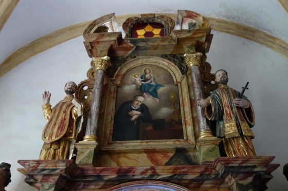 Über dem Schrank befinden sich ein freigelegtes spätgotisches Apostelkreuz und ein Bild von der Verehrung Jesu mit nackter Schulter. An der rechten Wand hängt ein bemerkenswertes Ölgemälde, ebenfalls aus der Spätgotik, mit einer Inschrift über die Begehung der Arche Noah. In der Nische unter dem zur Turmkammer angrenzenden Fenster ist eine Statue des heiligen Antonius und rechts daneben ein Kreuzigungsbild vorhanden.