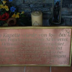 Die Kniestühle aus Holz, von Herrn Peter Reinprecht sen. im Jahre 1940 angefertigt, wurden exzellent restauriert. Die Gemäldearbeiten außen und im Innenraum der Kapelle wurden vom Frohnleitner Hobbymaler Karl Reiter meisterhaft durchgeführt.