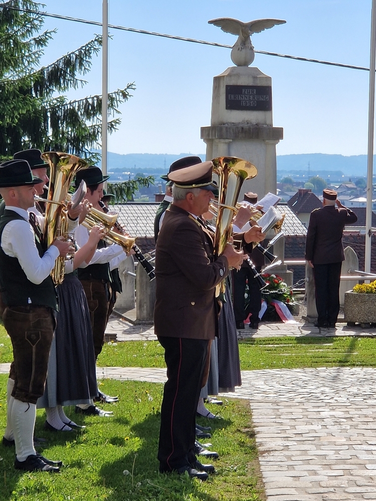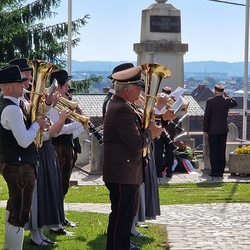 Musikalisch gestaltete – schon traditionell - die Marktmusik Unterpremstätten-Zettling die heilige Messe, den Ein- und Auszug sowie die anschließende Kranzniederlegung beim Kriegerdenkmal.