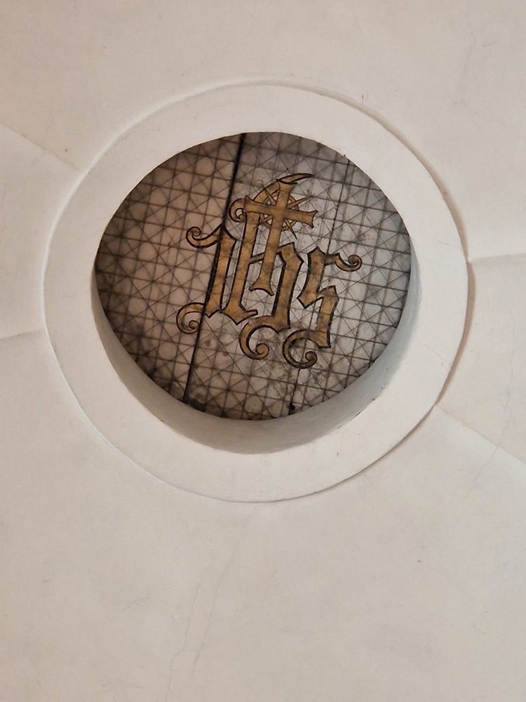 Die blaue und rote Linie im Kelch stellen Wein und Wasser dar, wie es in einem Kirchenlied heißt: „Wie Wein und Wasser sich verbinden, so gehen wir in Christus ein, wir werden die Vollendung finden und seiner Gottheit teilhaft sein.“