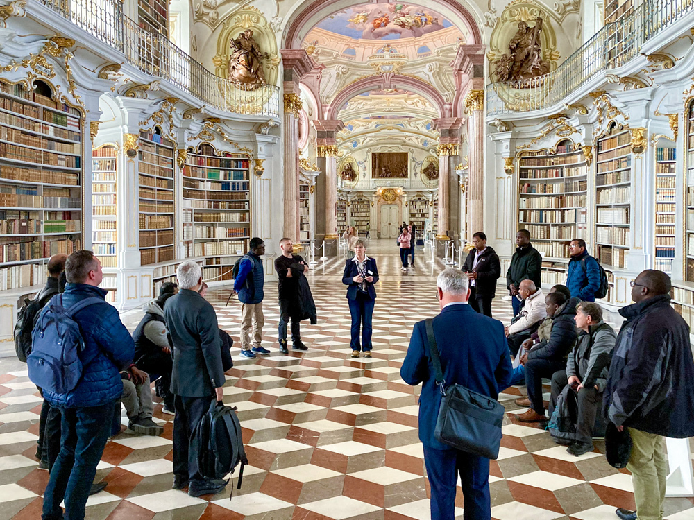 Abt Gerhard Hafner OSB erzählte von der 950-jährigen Geschichte des ältesten steirischen Benediktinerstiftes. Dessen Entstehung ist einer Frau zu verdanken – der heiligen Hemma von Gurk, die 1074 diese für viele Menschen heilsame „mission impossible“ („unmögliche Mission“) ermöglichte. Nicht nur die Führung in der weltberühmten Klosterbibliothek mit vielen kostbaren Schätzen, sondern auch der traditionsreiche Klosterwein und die erlebte Gastfreundschaft machten den Tag unvergesslich.